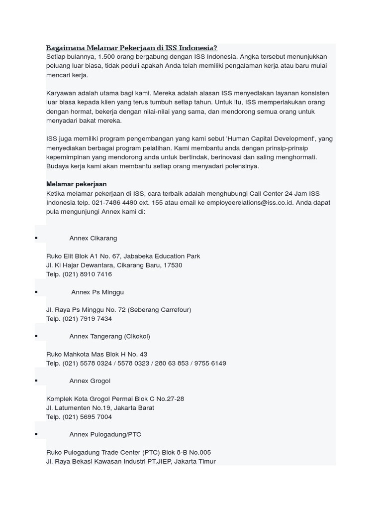 Ketika melamar pekerjaan di iss, cara terbaik adalah menghubungi call center 24 jam iss indonesia telp.